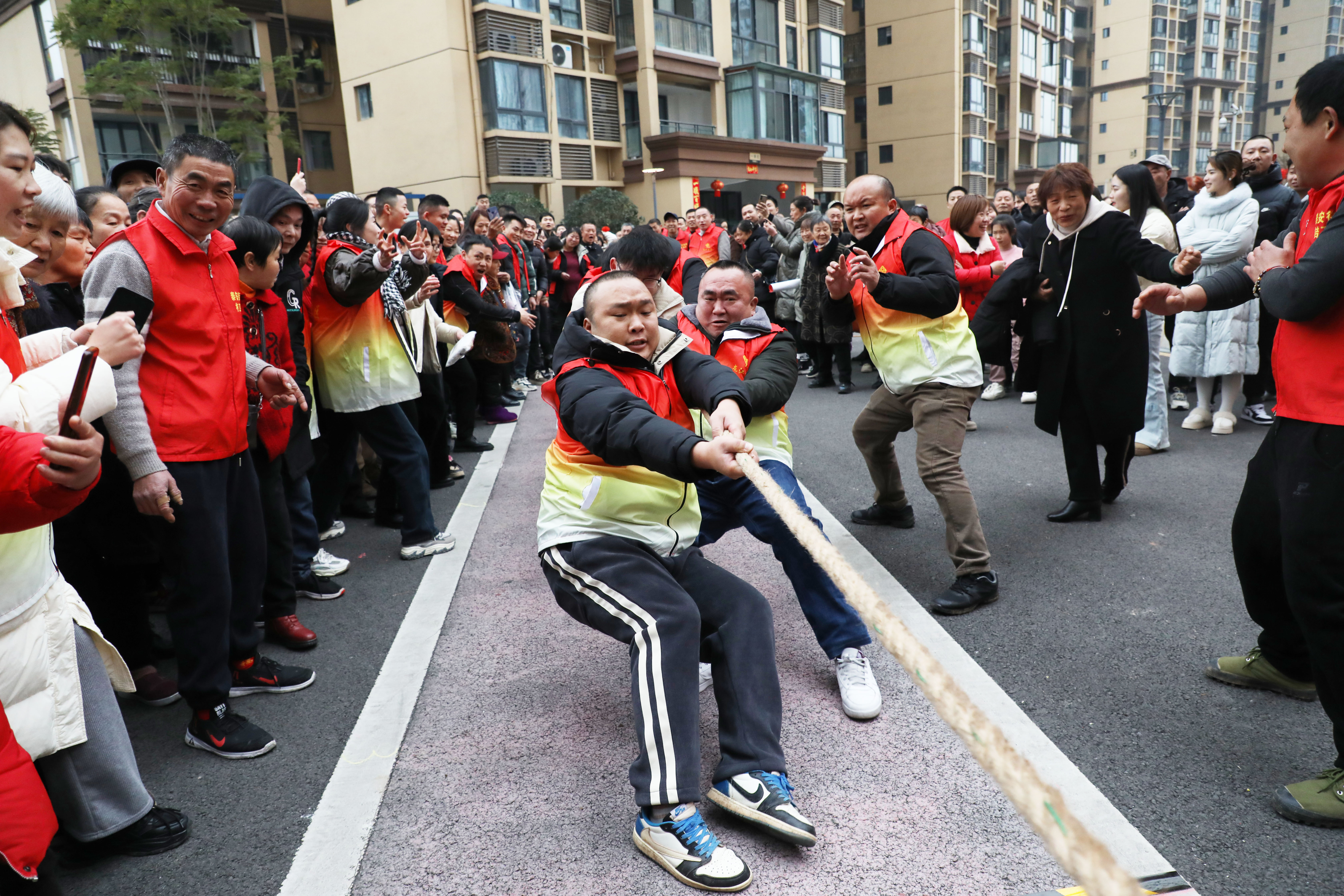 民俗文体活动现场,“猪八戒背媳妇”“接福挑战赛”“旱地龙舟比赛”“拨河比赛”等项目火热进行中。几个“猪八戒”背着漂亮的“媳妇”负重奔跑,背的人气踹吁吁,背上的人乐呵呵。“福气”在姑娘小伙的你追我赶中滚滚而来,个个笑得合不拢嘴。旱地龙舟随着一声哨响,像是一道道闪电,眨眼间就“划”向了终点。拨河比赛中,参赛队员们力拔山河的气势和场外观众的加油助威,瞬间点燃了整个赛场。