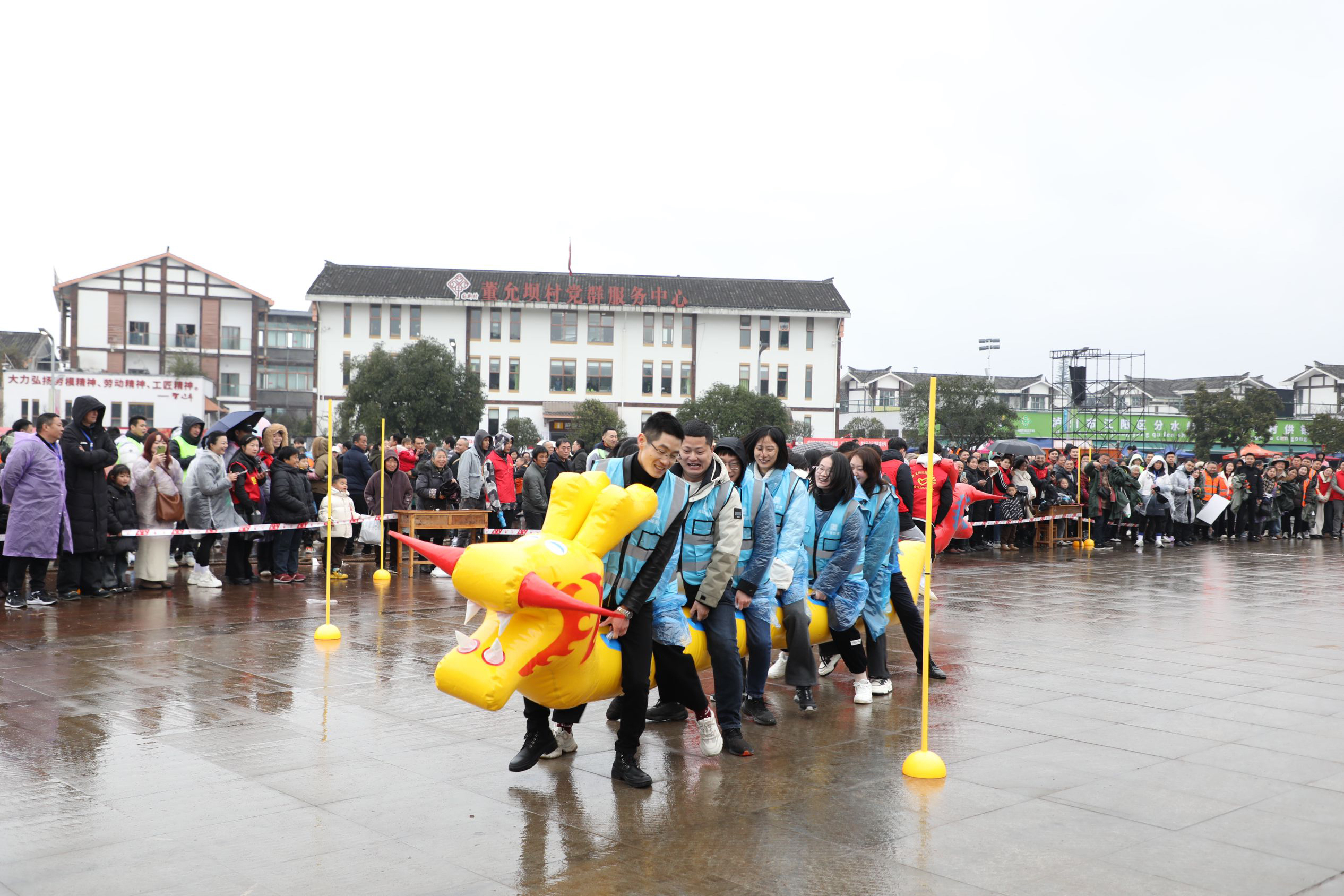 来自江阳区15个街镇的代表队伍齐聚一堂,猪八戒背媳妇、拔河比赛、旱地龙舟、接福挑战赛轮番上演,大家拼尽浑身解数争夺冠军,在娱乐中感受传统民俗的独特魅力,共同度过了一个难忘的元宵佳节。