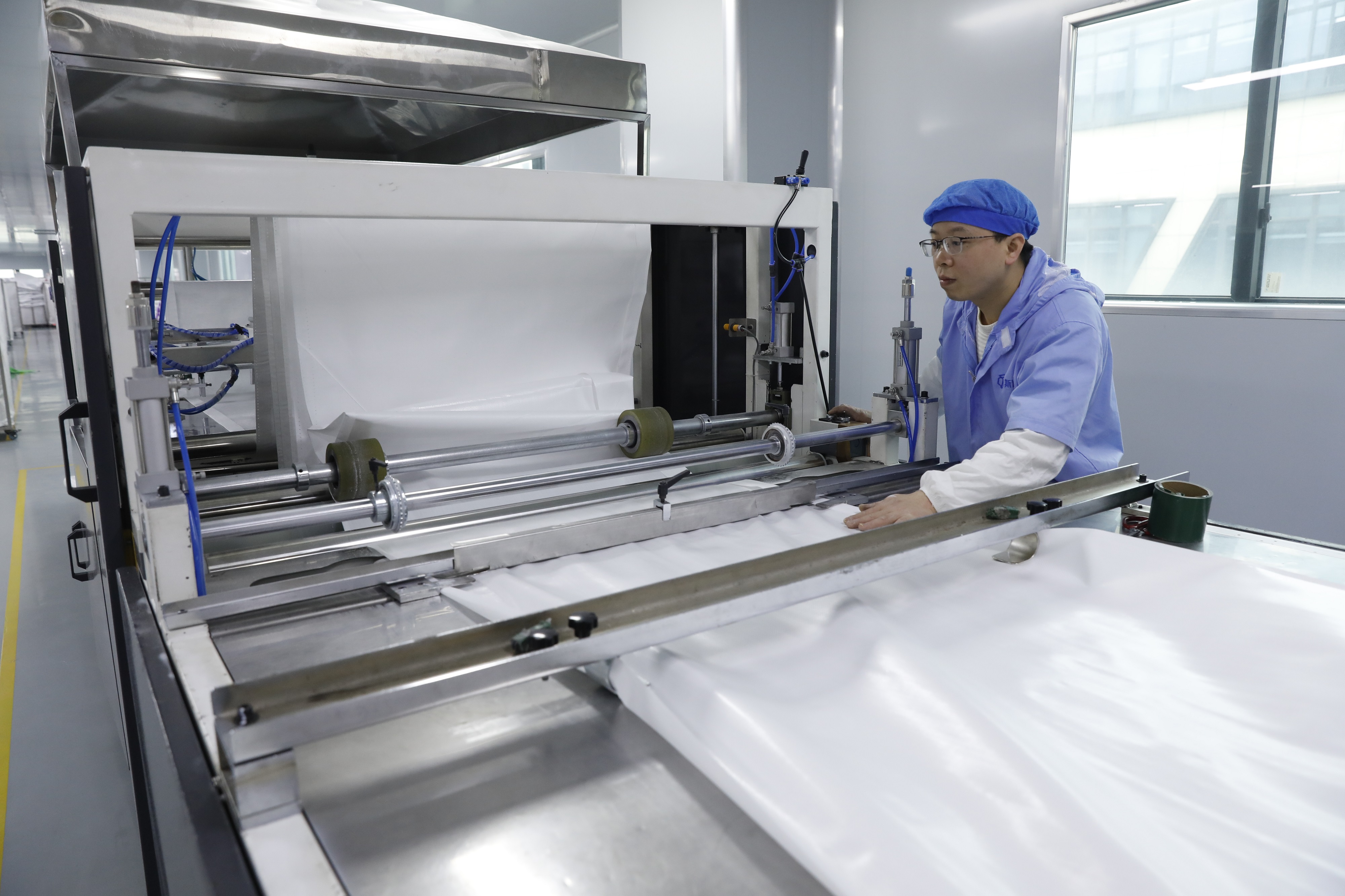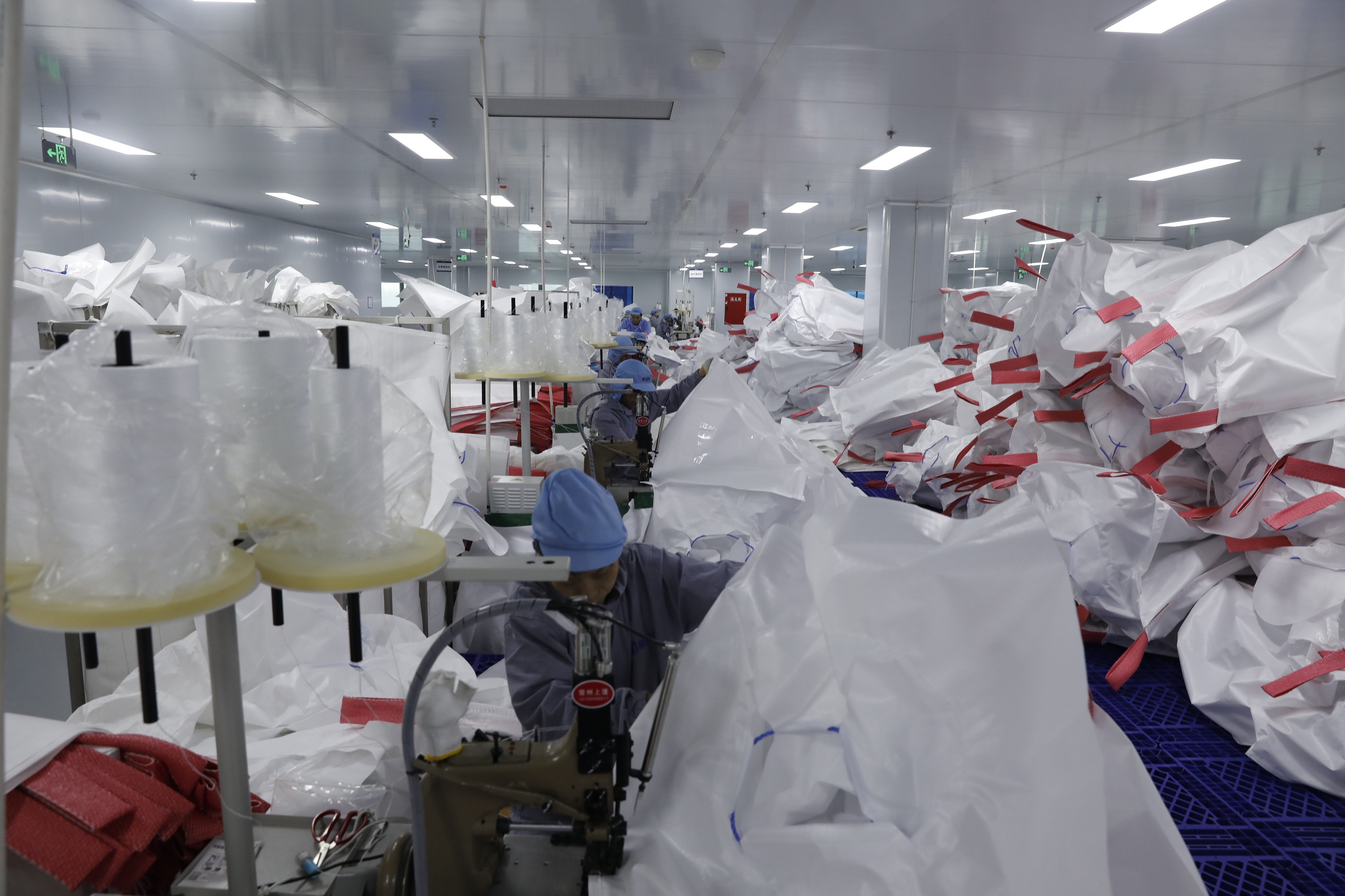 陈友波介绍,制造一部主要生产集装袋的内袋,每天能产出6000多个,使用的材料包括PE膜、铝塑膜等,“现在我们的订单还有60多万条,已经安排到了4月份,整个公司满负荷运转。”
