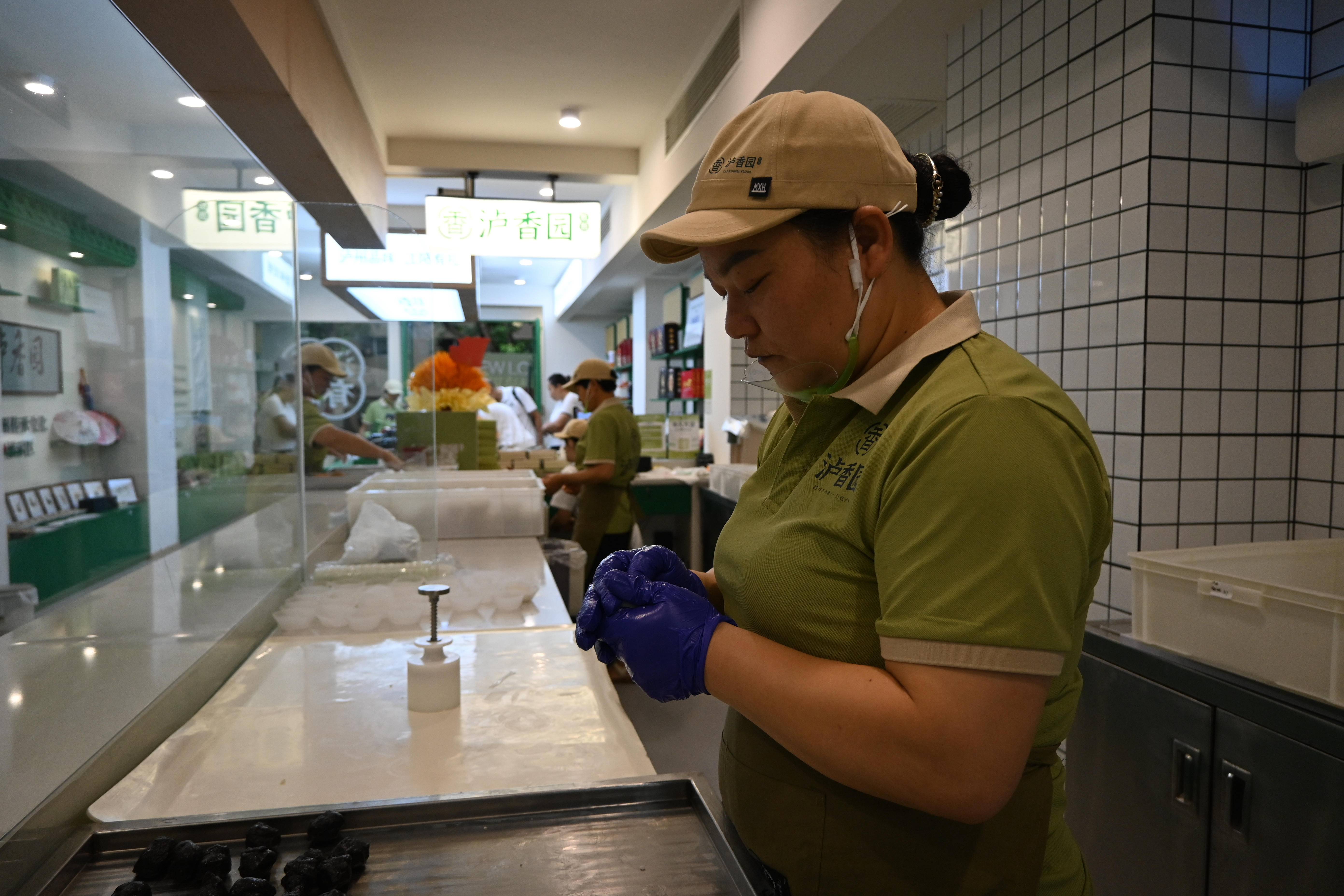 橱窗前,泸香园传统糕点负责人代学林忙着补充模具。他介绍,这块看似简单的米糕背后藏着繁复工艺:“大米得先揉搓一到两个小时,等温度柔和才能包馅,否则米粉松散不成型。”为了让图案立体清晰,团队耗时两个多月、连改三版模具,“第一版麒麟温酒器像狮子头,直接被否掉;现在的浮雕造型纹理清晰不散型,才终于过关。”