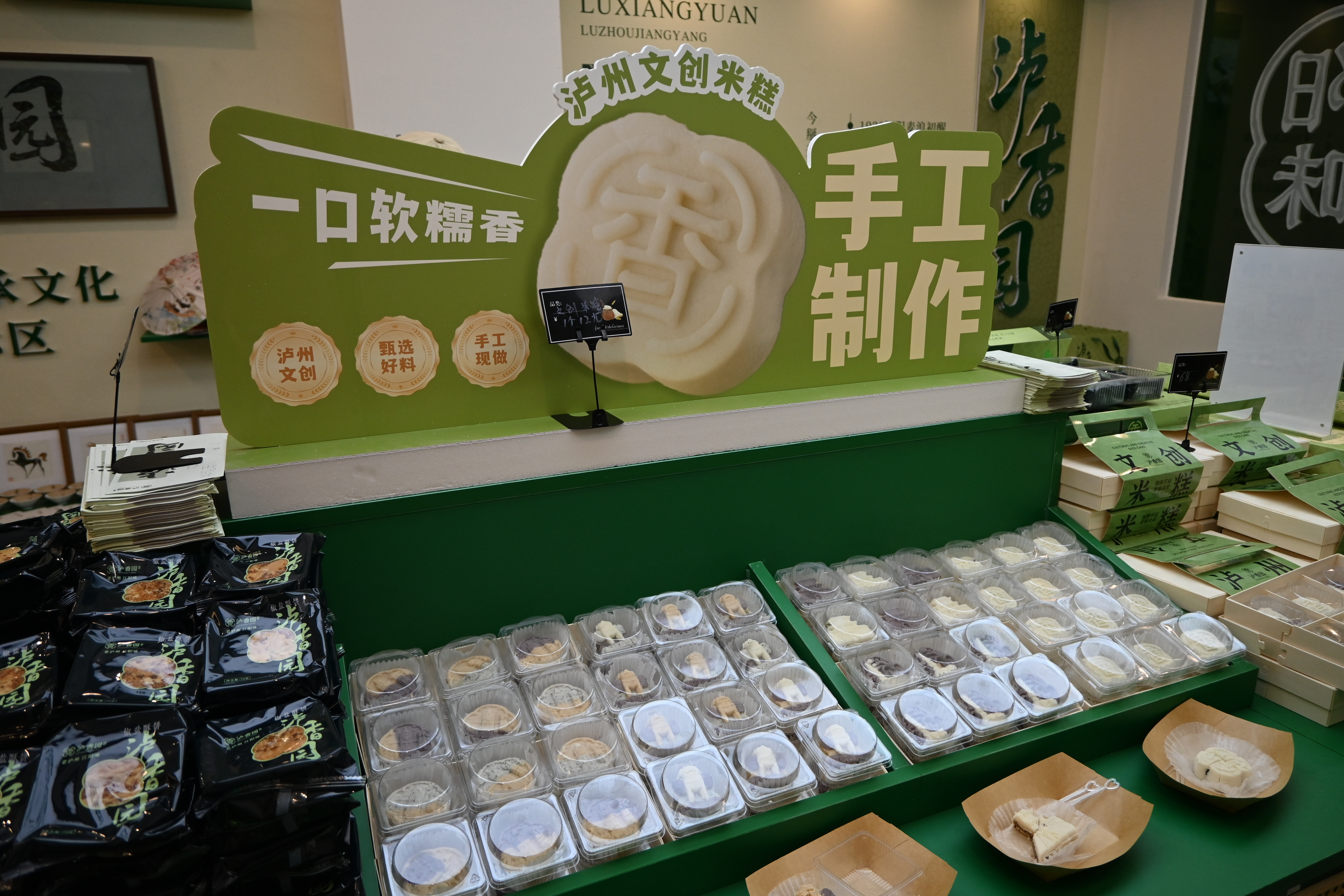 江潮讯(记者张耀仁)9月18日上午,位于江阳区华阳街道丹艳路109号的“泸香园·传统中式糕点文化体验店”正式开门揖客。店内人头攒动,市民们一边品尝刚出笼的文创米糕,一边在货架前挑选豆痴酱油、泸州肥儿粉、纳溪特早茶等四县三区特产。钟鼓楼、白塔、东门口等泸州地标被精准压印在米糕表面,9.9元的尝鲜价让不少人一次带走五六枚。
