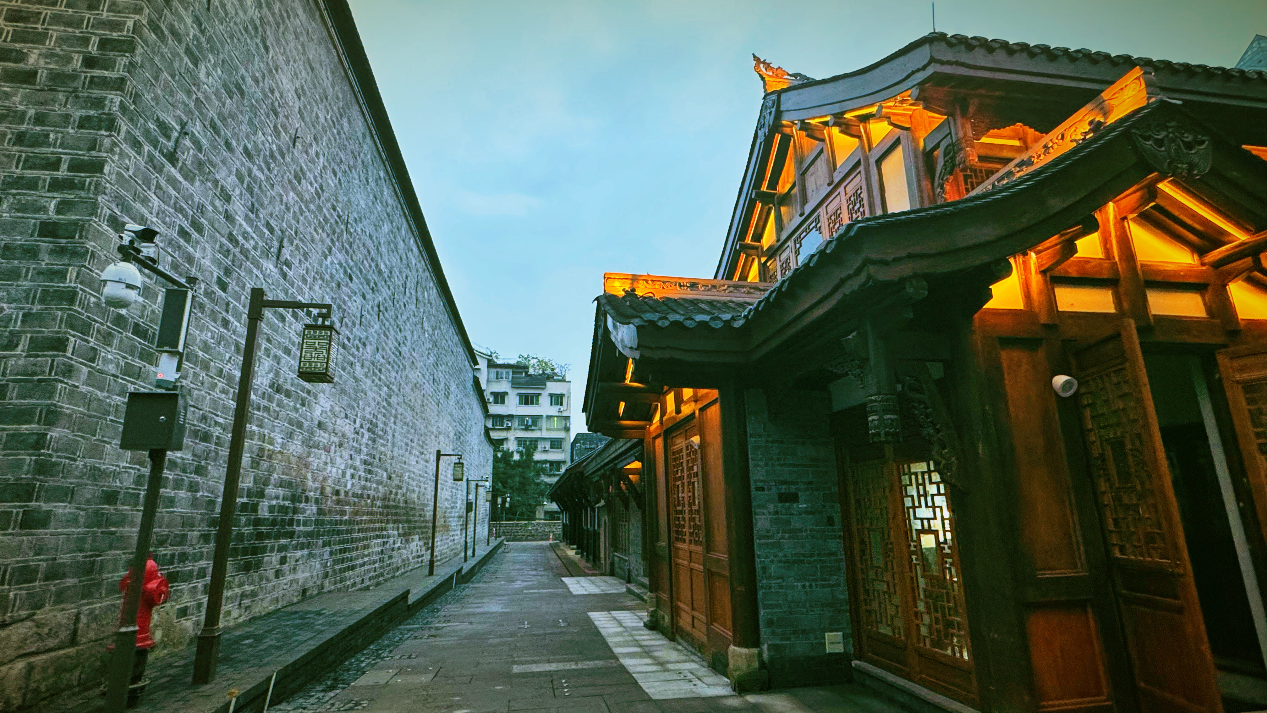漫步老泸州•大河街,青石板路被岁月磨得温润。640米的宋明城墙如一位沉默的老者,静静守护着街巷里的日常,是一处让时间自愿放缓脚步的所在。会津城垣的青砂条石历经数百年风雨,每一道斑驳都是历史的笔迹。紧邻城垣的会津城垣民居(三圣宫)为清代川南典型的五进院落,曾是商帮祈求生意顺遂的精神归宿,如今修旧如旧,飞檐斗拱间仍可见往昔的繁华与虔诚。
