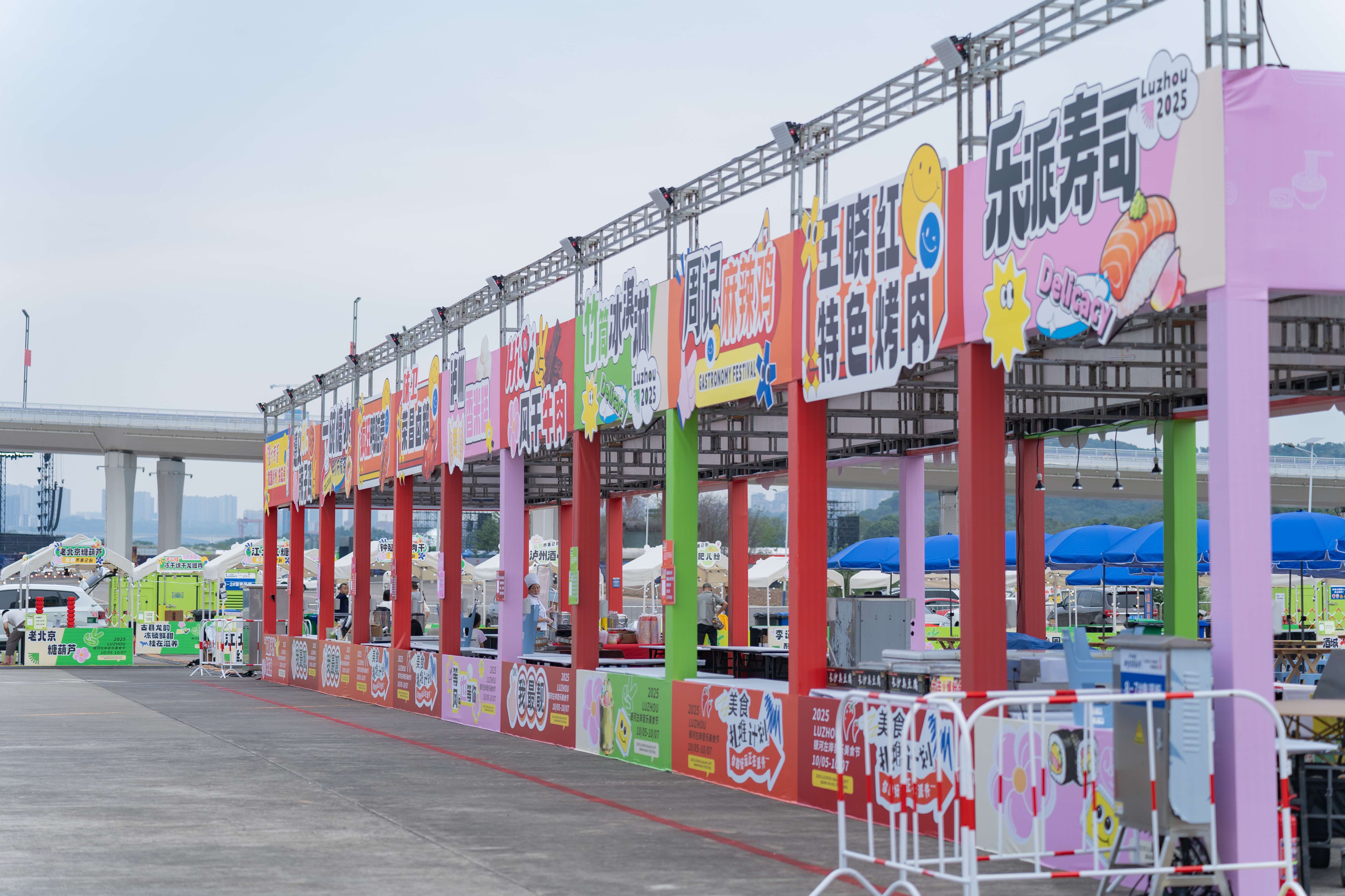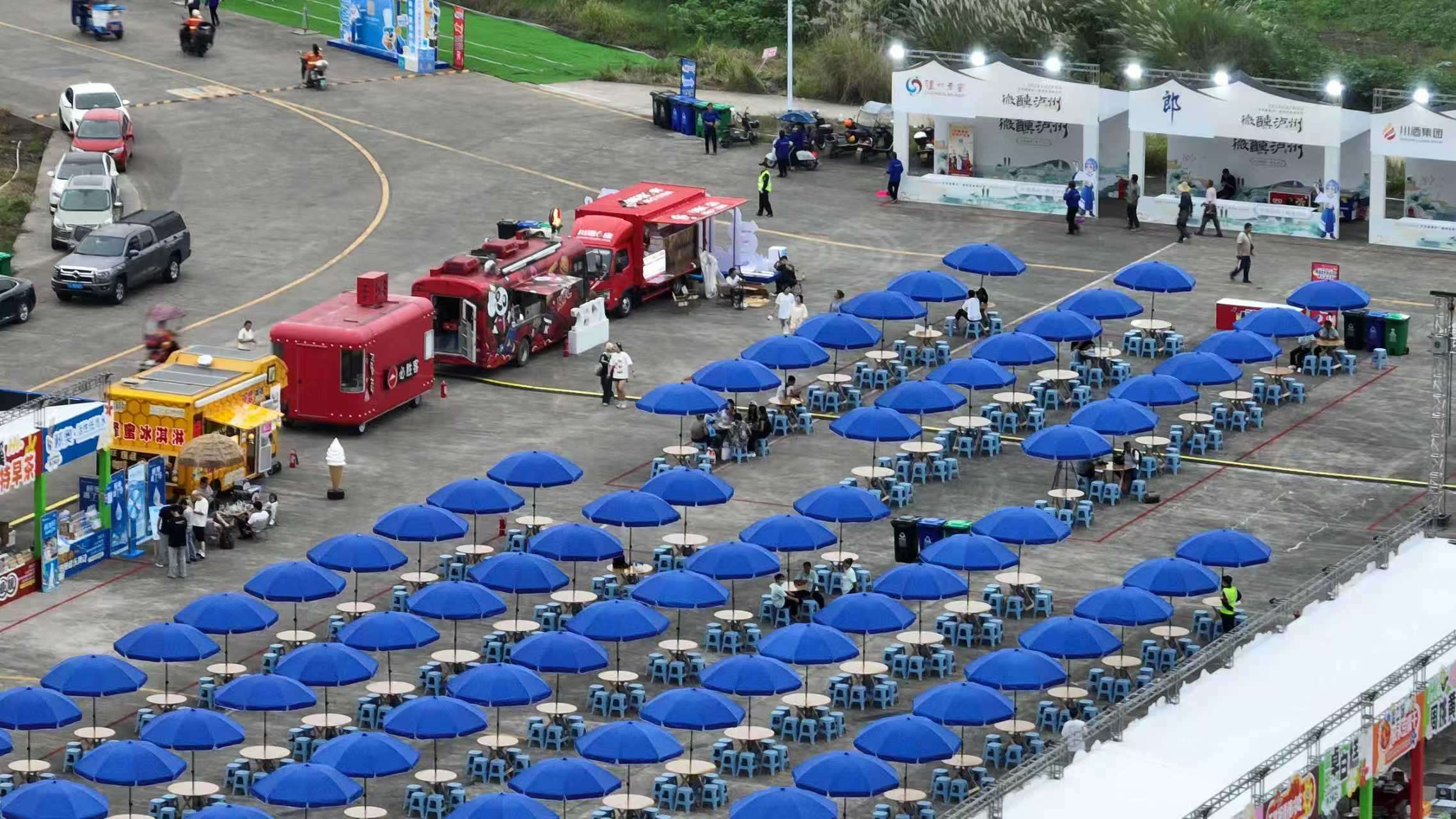 消费场景区内,不少商家摊位已经入驻,其中包括蓝田卓白糕、肖鸭子、阿林晓馆等江阳特色美食、商家。能够同时容纳2000人用餐的场地内,前来观演的乐迷可以体验到正宗、新鲜的泸菜风味,与此同时,场地内还设有泸州老窖、江阳油纸伞等泸州代表性特产商家,满足游客们“一站式”乐购需求。