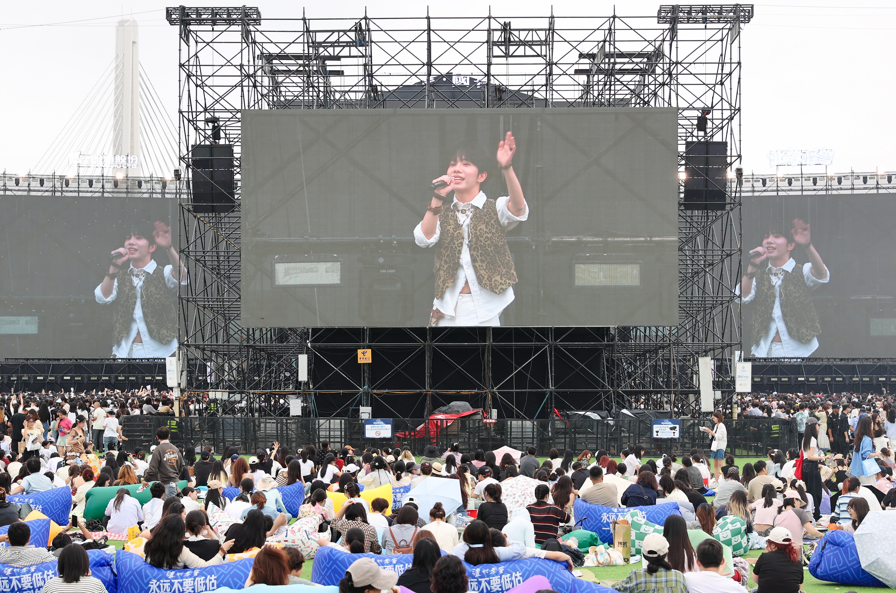 台上,音符跳跃,光影交织,从歌词到曲风,从妆容到表演,歌手用音乐、语言和动作调动着观众的情绪。台下,乐迷们或站、或坐、或躺,随着节奏挥动双臂,身体自由摇摆,欢呼声浪此起彼伏,整个场地瞬间化作一片沸腾的海洋。