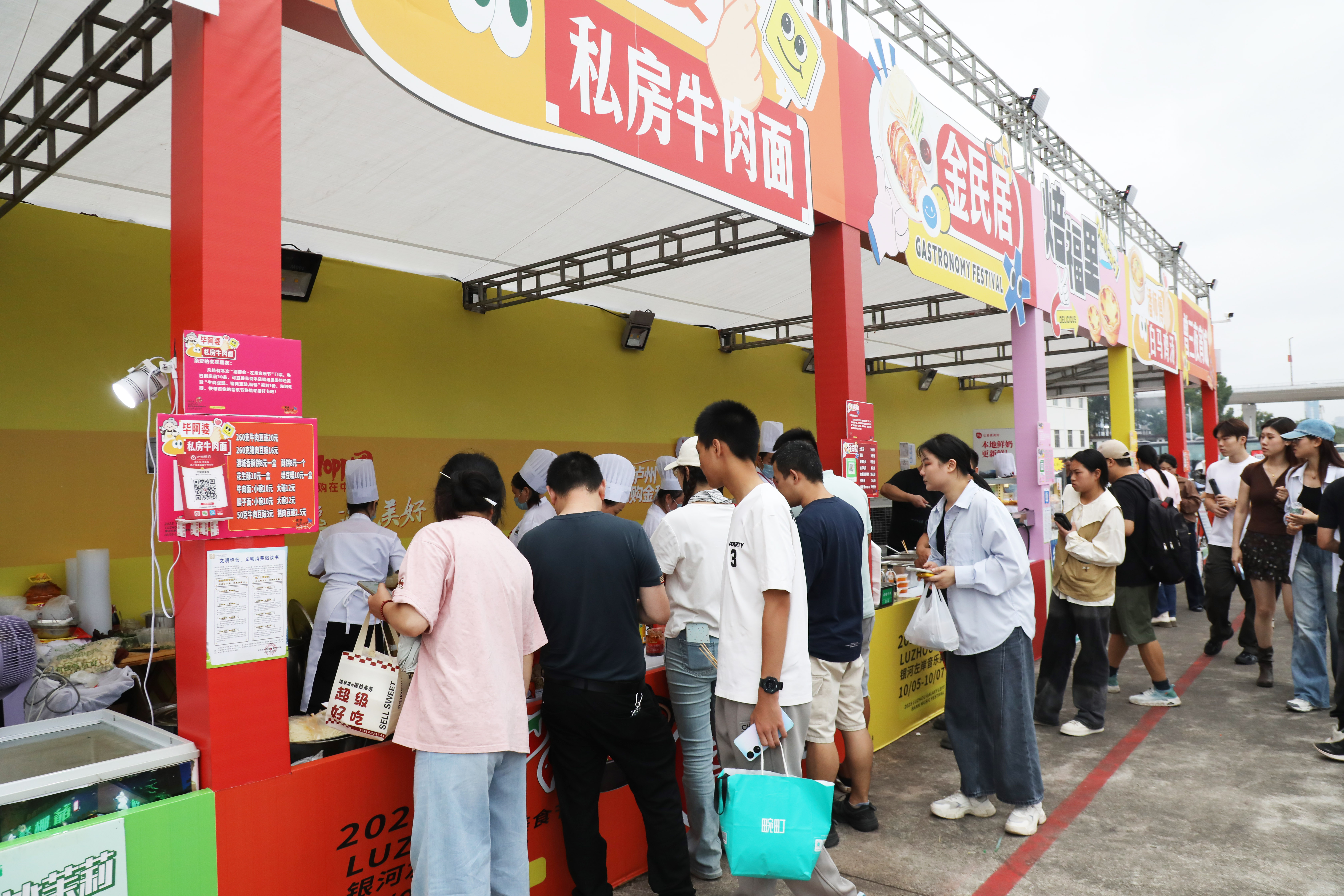 “微醺泸州”品鉴区汇集了泸州老窖、郎酒等白酒以及啤酒、果露酒、特色酒,乐迷可在此“免费品”“快乐喝”“专享购”“趣味玩”;“烹香泸州”用餐区可同时满足2000人用餐,阿林晓馆、嘉芸荟等本土餐饮品牌集中亮相,提供从家常小炒到特色小吃的丰富选择;“乐购泸州”展销区则集结了美酒、桂圆制品、酒心糖等特产,以及毕六福油纸伞、酒城单碗、杨氏香囊等文创产品,成为伴手礼首选。