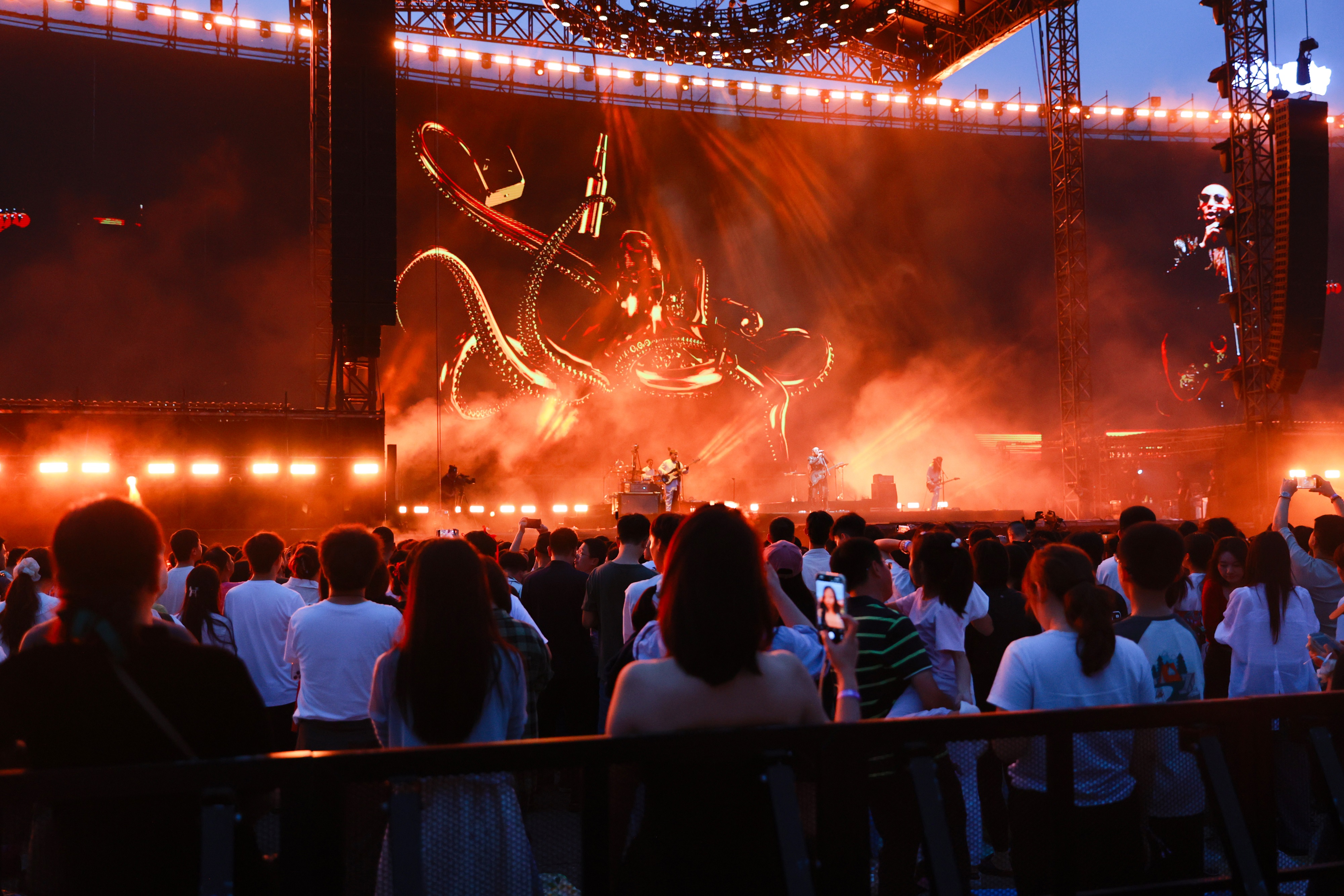 随后,音乐节进入昼夜接力的高密度演出模式。Hogee李昆霖、野肆乐队、表情银行、犬儒、闪星TWINKLESTAR、DOUDOU、旅行团、二手玫瑰、痛仰等乐队,接连掀起一波波热浪。