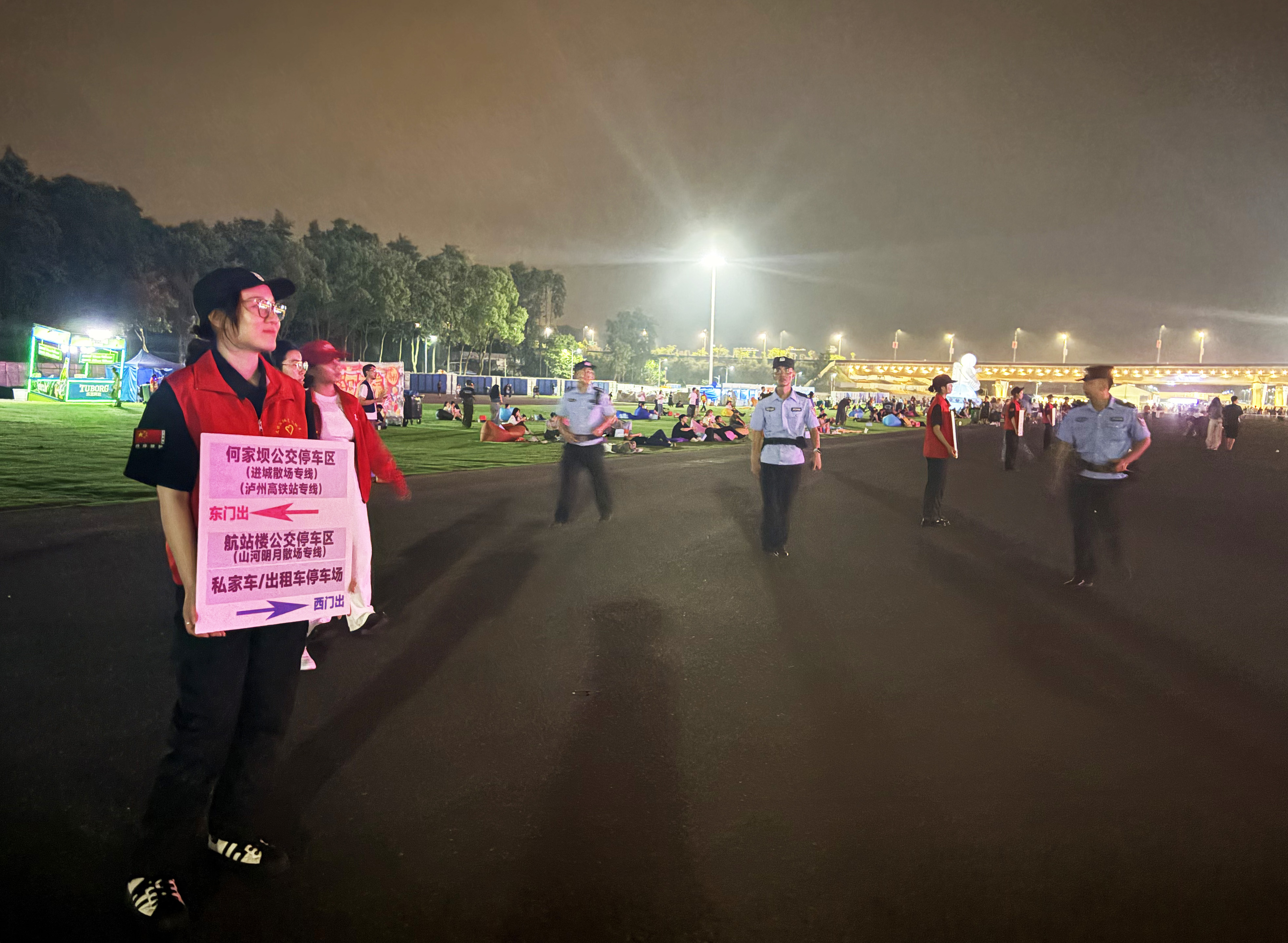 “除了清晰的路标,还有志愿者高举指示牌引导,非常贴心。”江苏歌迷王亮亮对现场服务赞不绝口。散场高峰期间,接驳车辆高效调度、秩序维护有条不紊、垃圾清理及时跟进,多部门信息共享与快速响应,确保了4万余人安全有序离场,整个过程忙而不乱。