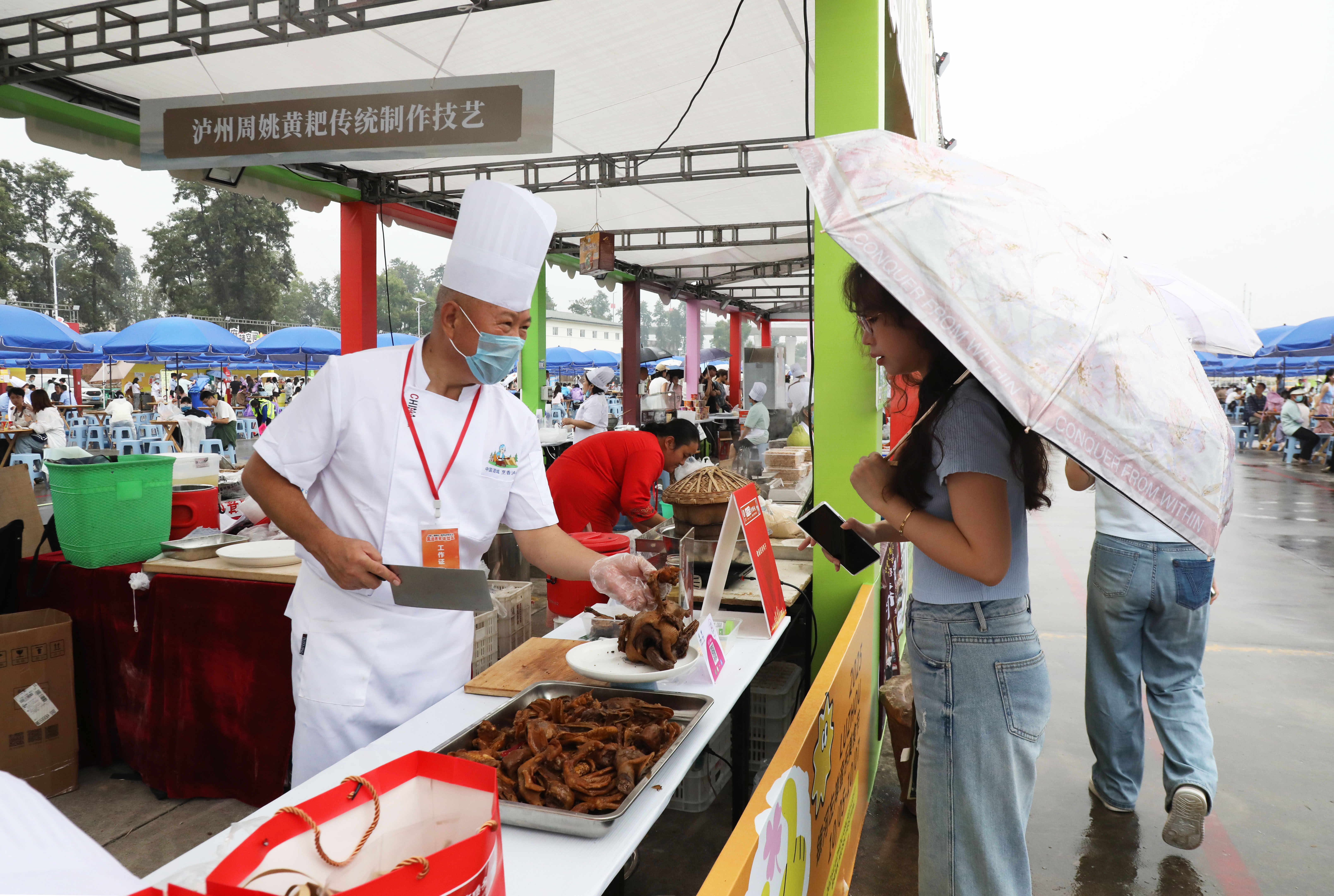 本地老字号卓白糕尽管24小时连轴生产,产品仍一上架就被抢购一空;肖鸭子销量逐日攀升,老板早早售罄后,还登台献唱为食客助兴。泸州老窖、郎酒、佳记酒等品鉴区酒香四溢,游客举杯畅饮,纷纷赞叹“泸州好,酒更好”,更有外地游客现场下单,直接快递到家。