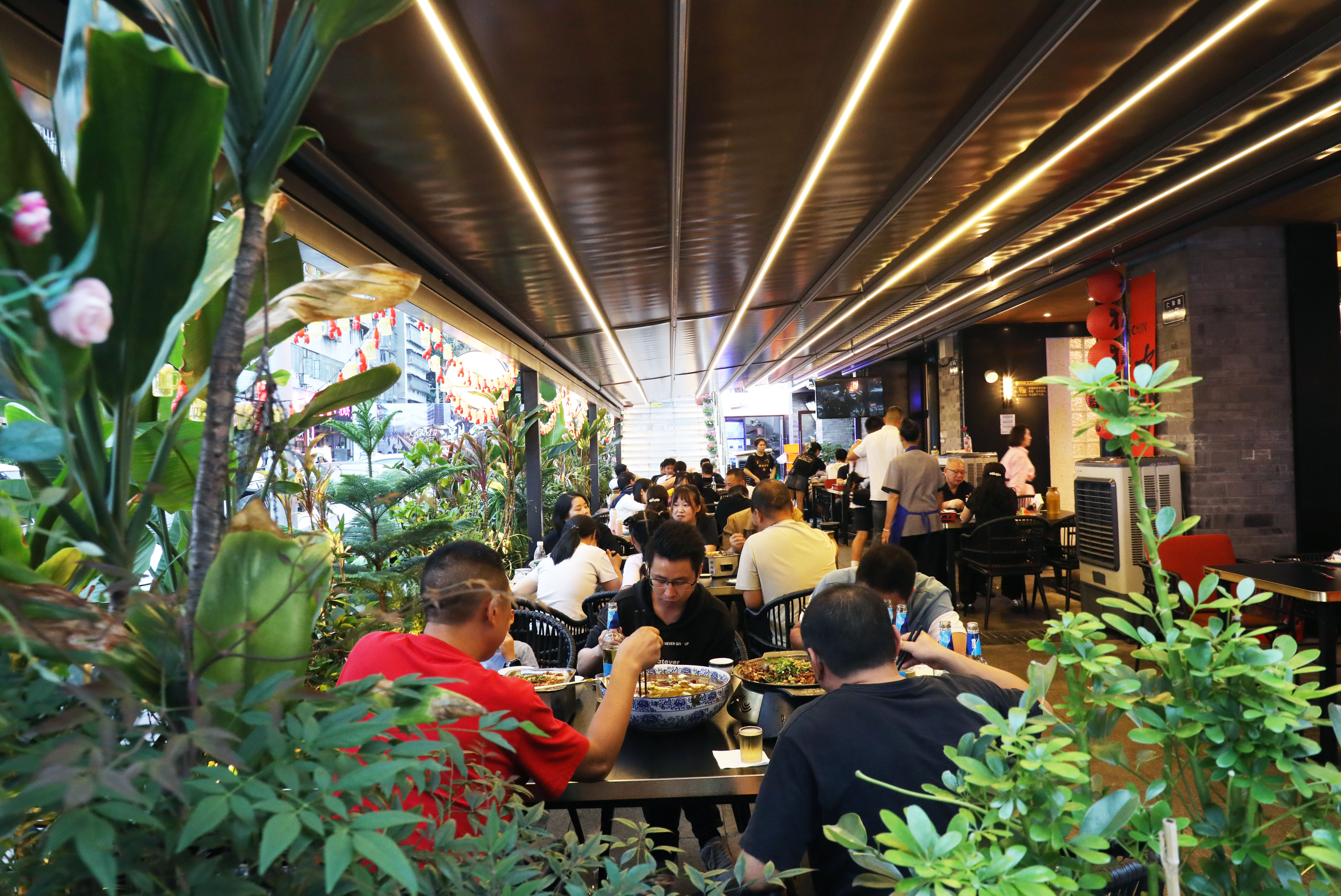 餐饮市场同样火爆。音乐节现场,泸州白糕、猪儿粑、肖鸭子等80余户商户参加摆展,受到乐迷们的一致好评。主城区内,各大餐饮店、夜宵店普遍营业至凌晨两点。5日晚11点,麻辣空间3个分店仍有包场600人就餐,海底捞火锅也有包场200人,消费热度可见一斑。