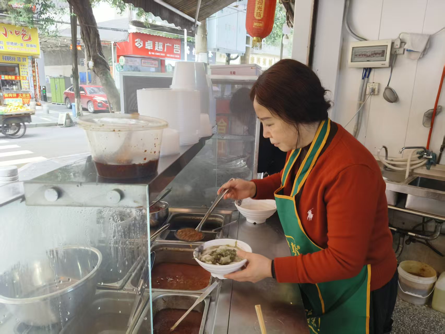 熟客李女士是土生土长的古蔺人,每周都会来打卡:“这米线的筋道、酸菜的酸香,和我小时候在家门口吃的一模一样!配着鲜骨汤,冬天喝完汤一身都暖和了,一口就想起老家的日子”;刚到泸州工作的小伙子小张也直言:“虽然古蔺面名气大,但我更爱米线,没想到在泸州能吃到这么地道的古蔺风味——在古蔺读书时就经常跑去吃碗碗鲜,这完全是记忆中的味道!”
