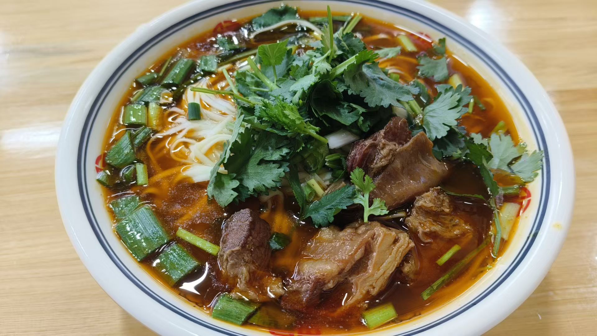 不大的店面被两口子打理得干净清爽,没有花哨装修,却透着泸州面馆特有的烟火气。端上桌的原汤牛肉面,把“实在”二字刻进每一口滋味:慢炖4小时的琥珀色灵魂浓汤,是老板每天凌晨起身,用新鲜牛肉搭配姜片、葱段小火慢煨而成,不添香精色素,全靠时间熬出骨肉本鲜。面条选用加蛋手工碱面,自带蛋香与筋道,吸汤能力十足,每一根都能牢牢裹住鲜醇汤底,配上堆得满满当当的大块牛腩——肥瘦相间、软嫩不柴,是经泡血、煸炒、卤炖1个半小时的功夫菜,入口满是扎实肉感,撒上葱花、香菜,暖透肠胃又解馋。