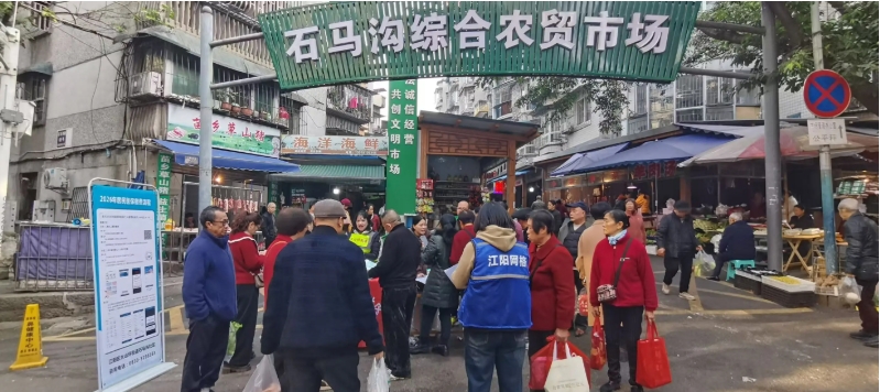江潮讯(记者 袁玉华)“阿姨您看,这里点一下‘城乡居民医保缴费’,输入身份证号就能完成参保!”11月30日上午,江阳区大山坪街道石马沟社区利用辖区农贸市场人流量大的特点,把惠民服务带到群众“菜篮子”边。