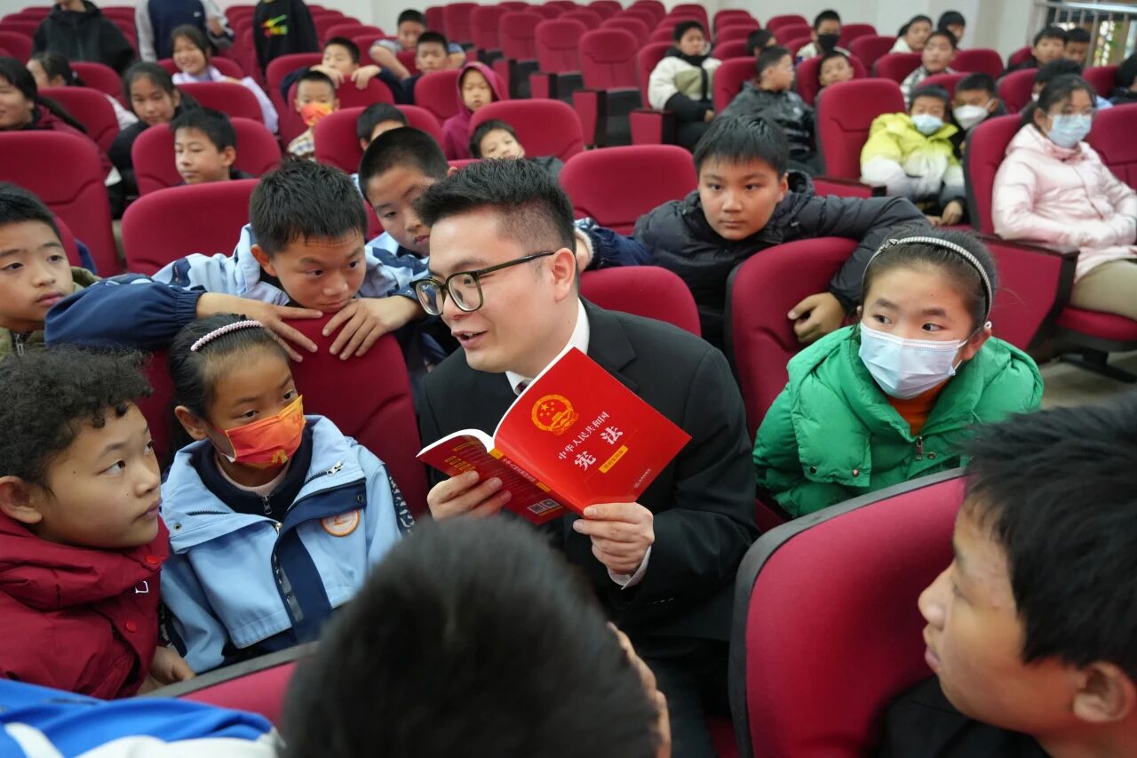 宣讲结束后,黄舣镇中心小学校法治副校长向学校赠送了《宪法》《未成年人保护法》《民法典》等法律书籍,鼓励同学们做学法、懂法、守法的好少年。