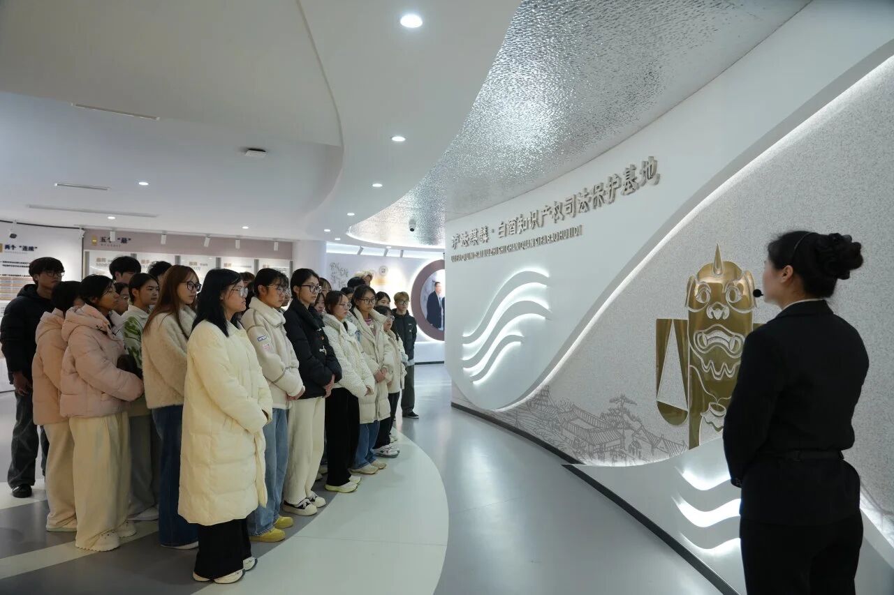 同学们实地探访了诉讼服务大厅、调解室等核心工作区域,并重点参观了“泸法麒麟・白酒知识产权司法保护基地”。参观过程中,普法志愿者用通俗易懂的语言解析司法服务流程,让同学们直观感受高效、便捷的现代司法服务,在潜移默化中筑牢法治认知基础。