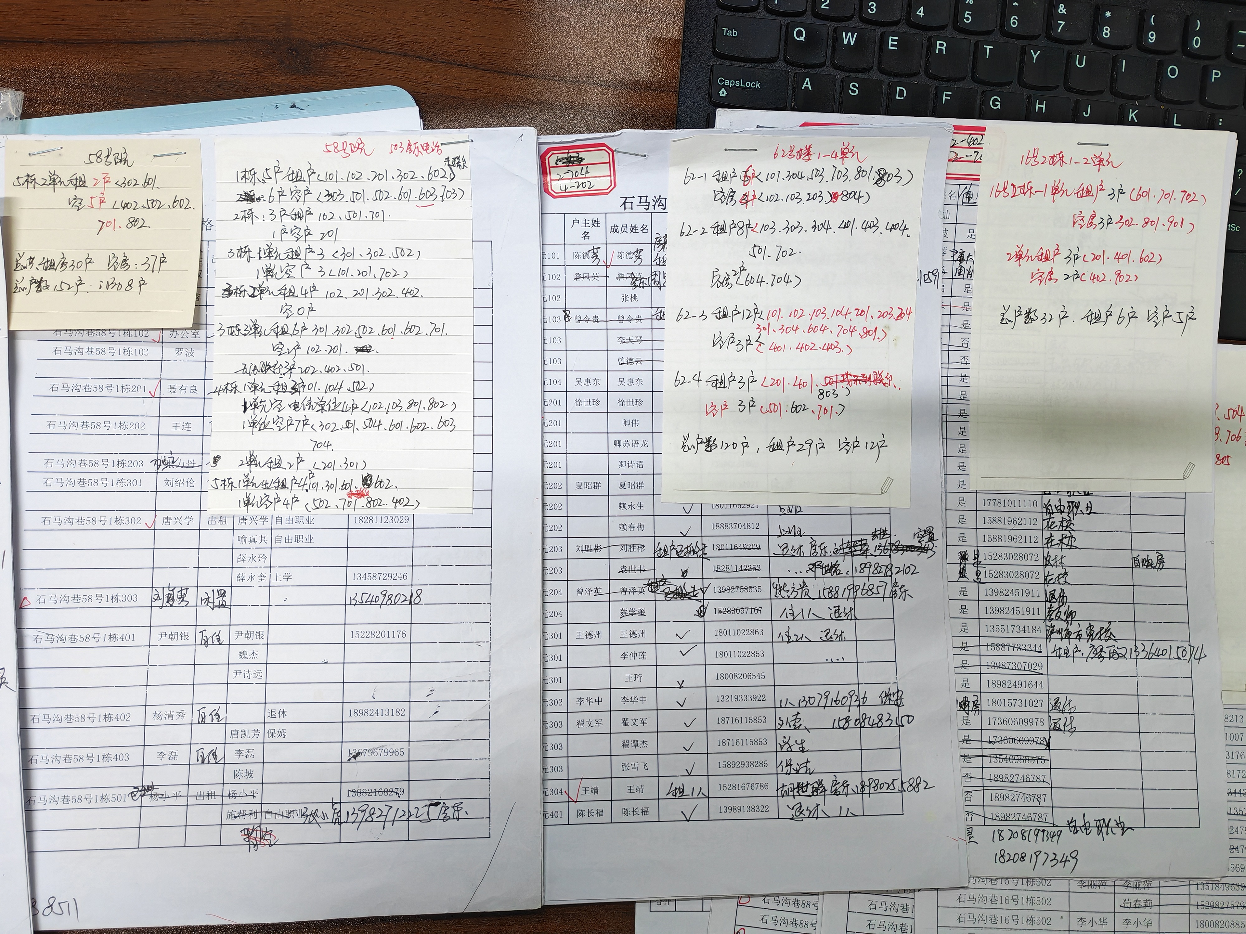 李小莲肩负着网格内732户居民的服务保障工作,那本被她视若“法宝”的台账,看似普通,却内有乾坤。翻开内页,字迹工整清晰,不仅记录着每户的详细住址、产权人、实际居住人、联系方式等基础信息,还标注了独居老人、残疾人、困难群众等重点人群,形成精准服务清单。