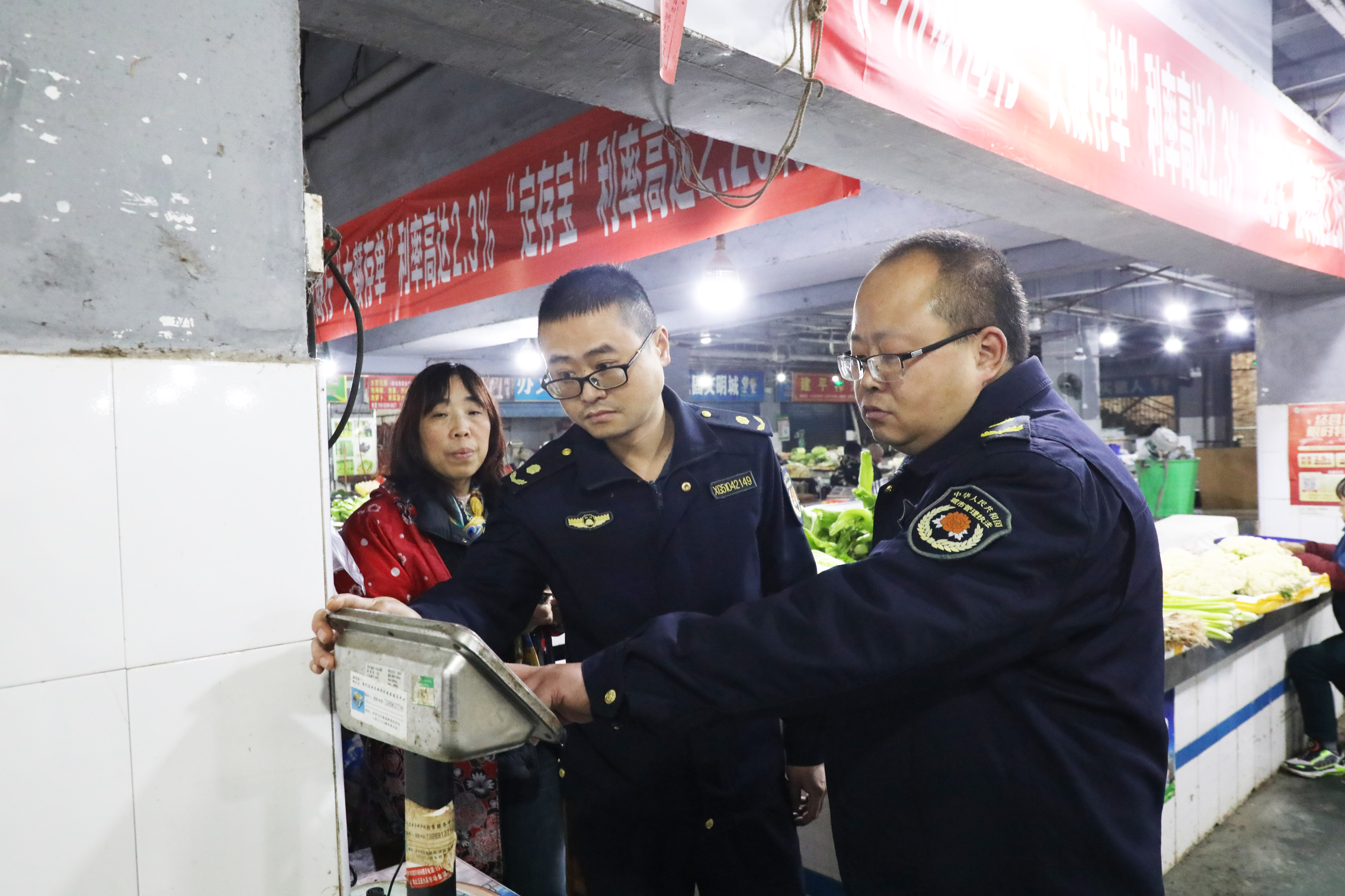 除了外部整治,农贸市场内部同样经历着深刻变化:摊位整齐划一,营业执照统一公示,电子秤规范摆放,生鲜、蔬菜、水产分区明晰,食品安全检测机制常态化运行,水产区排水等设施问题也得到针对性改善。
