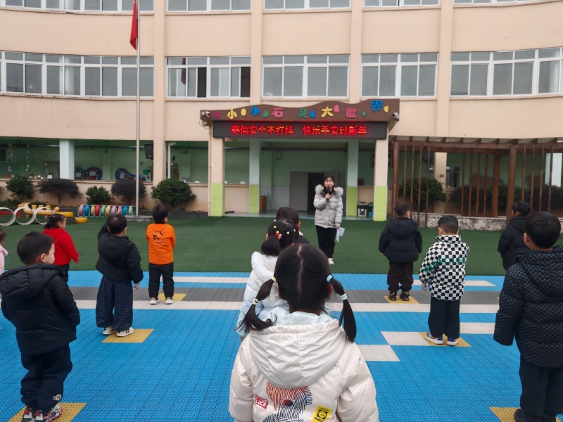 活动中,园长朱黎娟通过趣味讲解、互动问答等形式,围绕防溺水、交通安全、用火用电安全、饮食安全、防拐骗等核心要点,传授实用安全知识,提醒孩子们远离危险场景。最后,师生共同齐声朗诵儿歌——《平安快乐过新年》,在朗朗歌声中巩固安全常识。