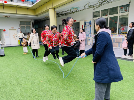 趣味互动环节亮点纷呈,跳花绳项目中,老师们或单人灵巧跳跃,或多人协作配合,尽显活力;拔河项目里,“党员先锋队”与“教职工联合队”的友谊赛尤为精彩,队员们凝心聚力、奋力拼搏,场外呐喊声不断,充分彰显党员先锋模范作用与团队协作精神。